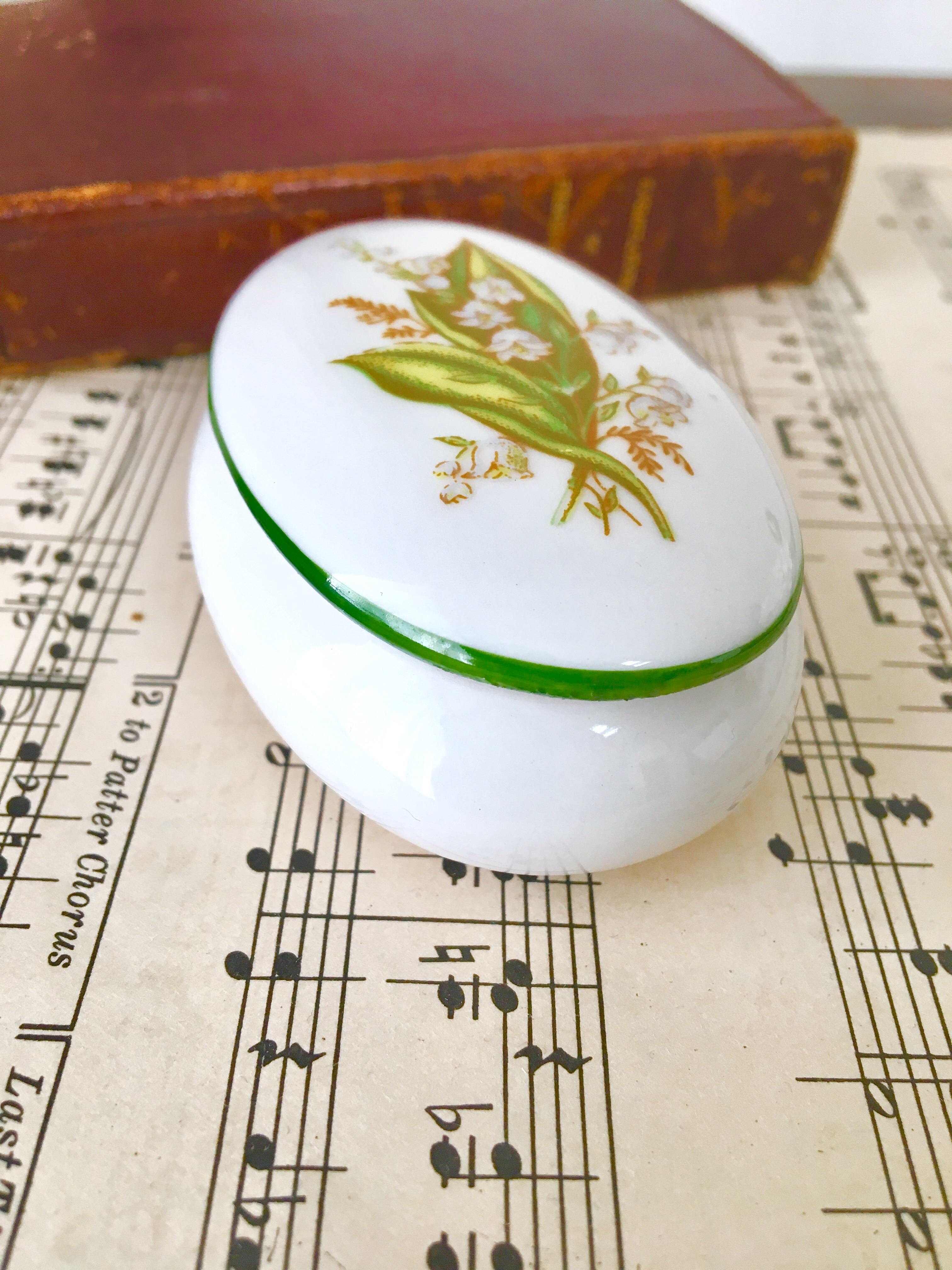 すずらんの絵柄が可愛らしい、ボンボニエール。