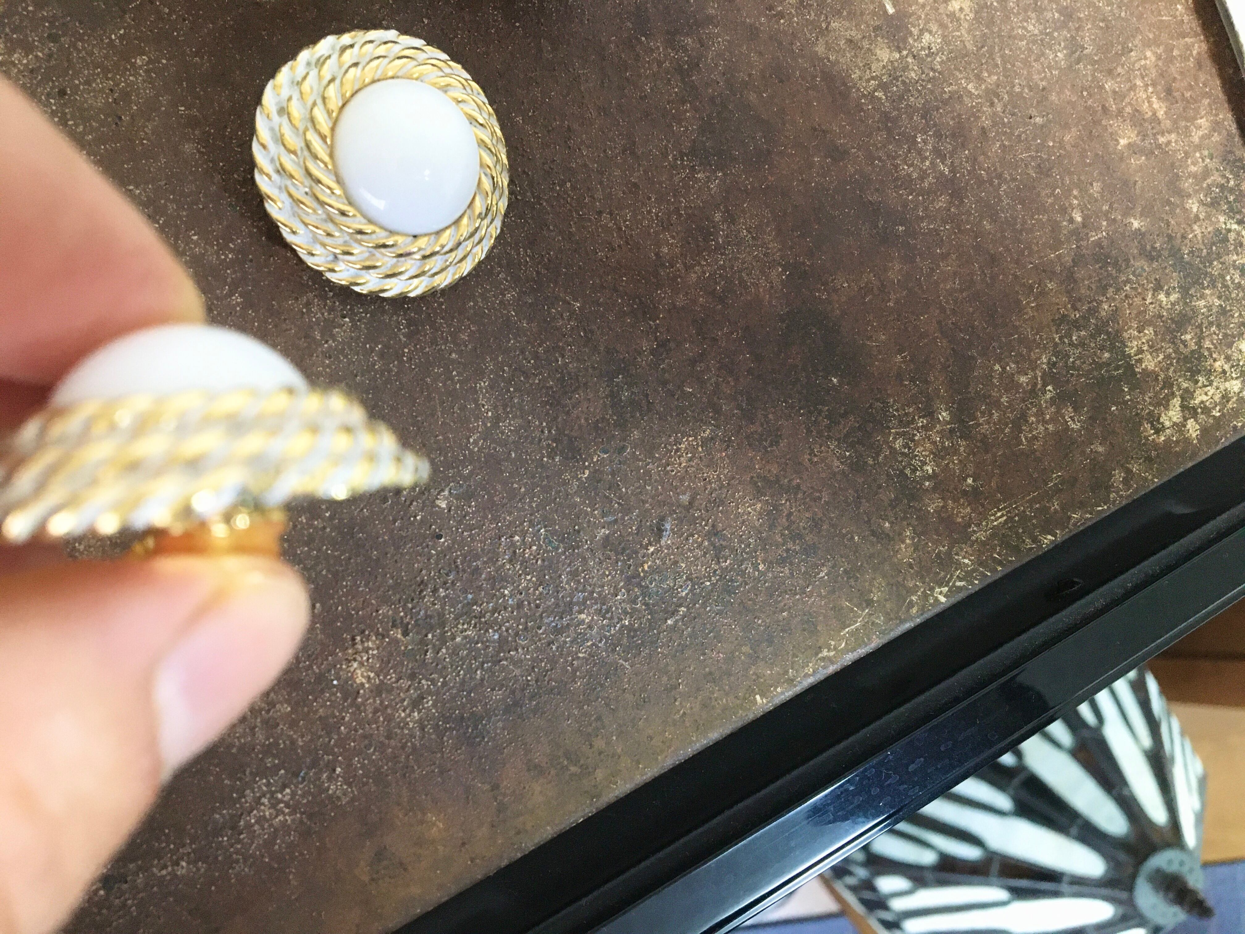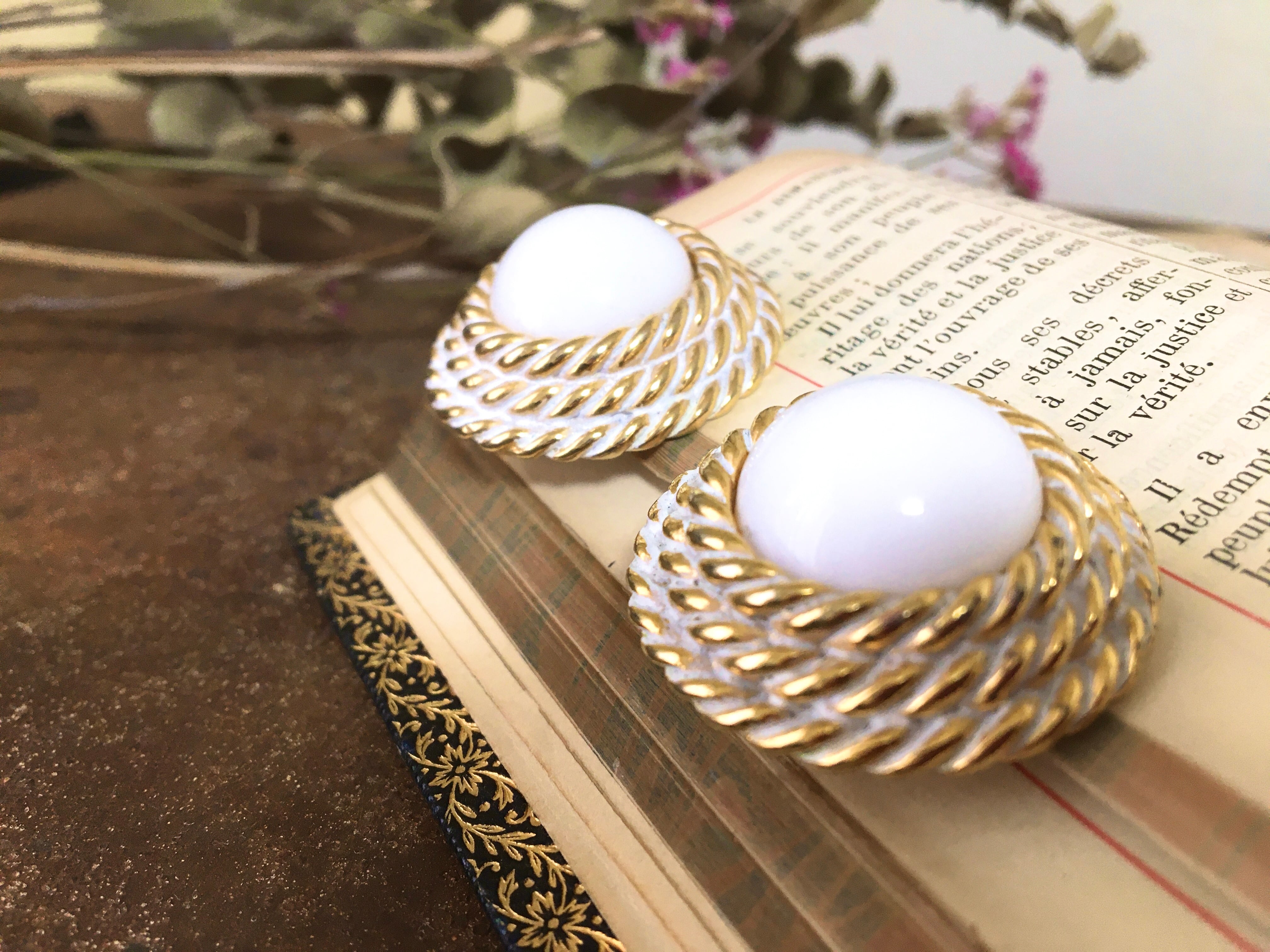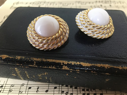 大ぶりなホワイトカラーのイヤリングです。